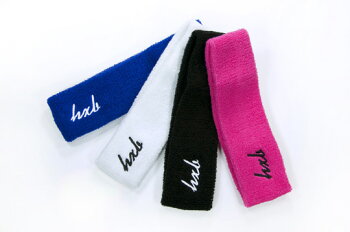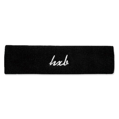 "HXB HEAD BAND 【Cursive】 LOGO BLACK M Size" パイル地に”hxb”の筆記体ロゴ刺繍が入ったヘッドバンドがリリース。